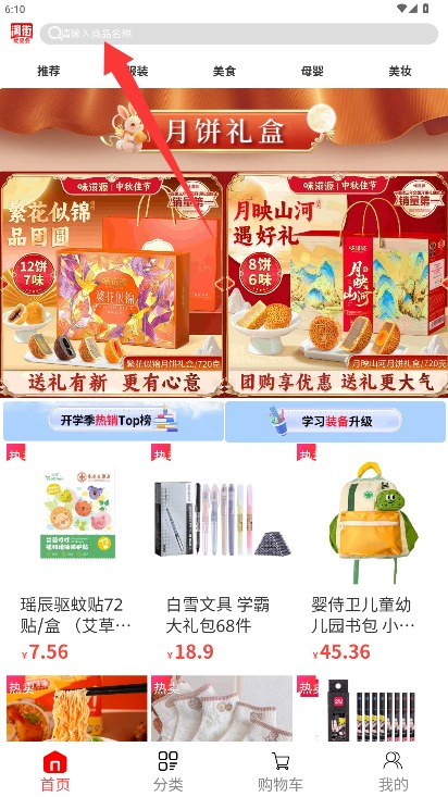 3、在首页界面顶部搜索栏输入商品名称或相关关键词,搜索需要的商品进行浏览。