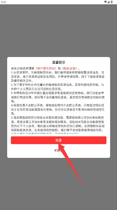 1、初次使用需阅读平台服务条款与隐私政策,确认无误后点击同意按钮进入。