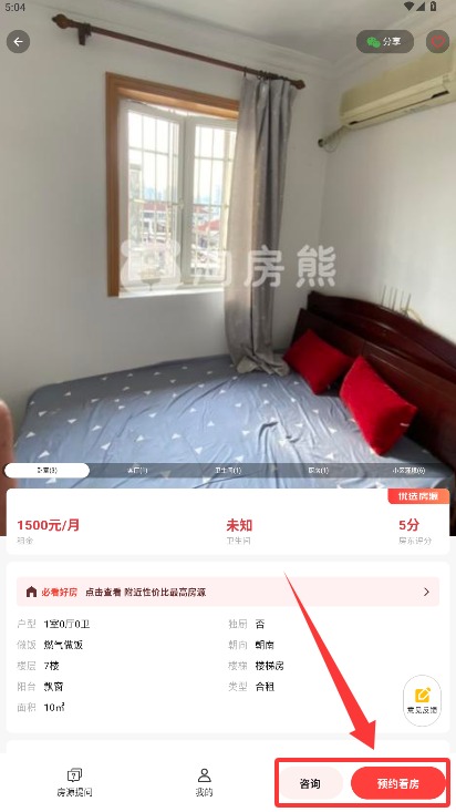 4、查看房屋详情了解租金与配套设施,点击咨询预约看房即可联系房东实地考察。