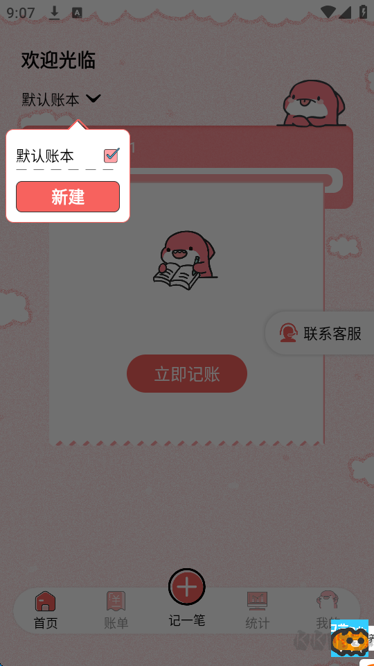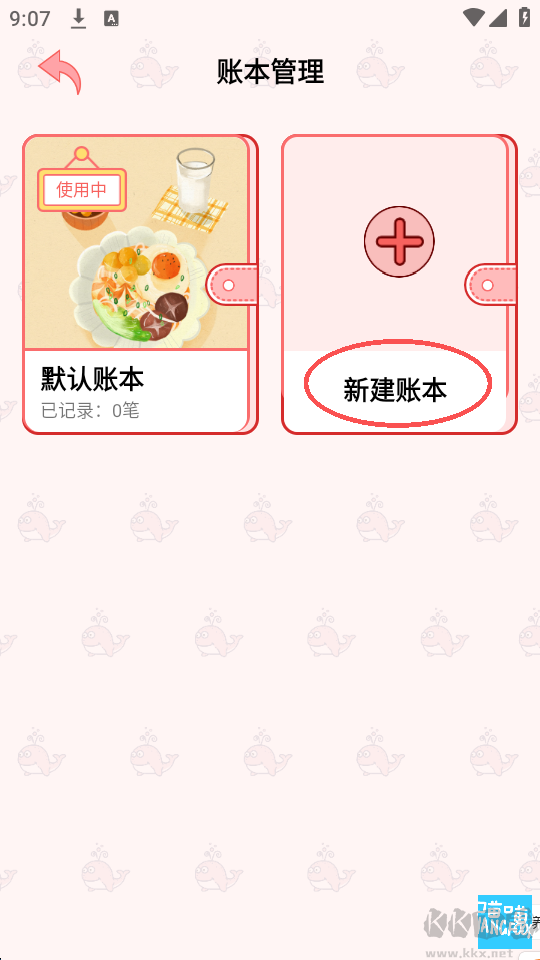 1、打开应用后,点击右上角的“新建账本”