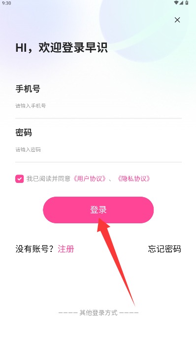 4、返回登录界面输入手机号和登录密码,勾选同意相关协议后点击登录按钮即可。