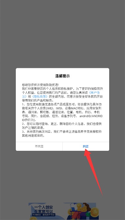 1、初次使用需阅读用户协议与隐私政策,确认无误后点击同意按钮进入登录界面。