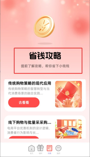 3、省钱攻略平台包含消费技巧、优惠组合、比价工具、消费指南、经验分享、直播教学等全方位省钱服务功能。