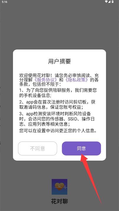1、初次使用需阅读用户协议与隐私政策,确认无误后点击同意按钮进入登录界面。