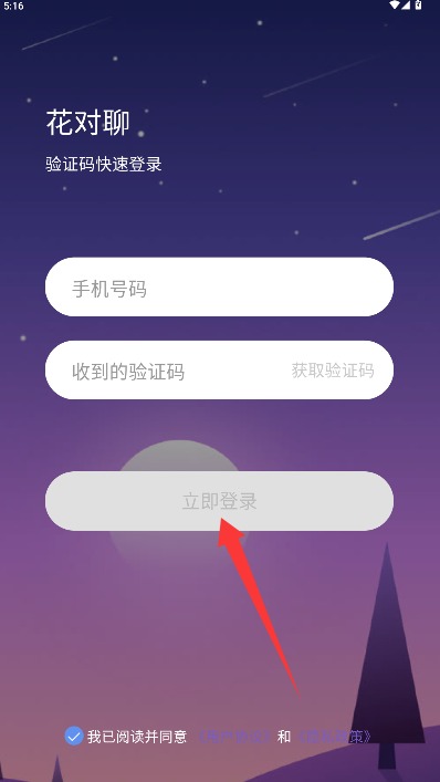 2、在登录界面输入手机号码并获取验证码输入,勾选同意相关协议后完成登录。