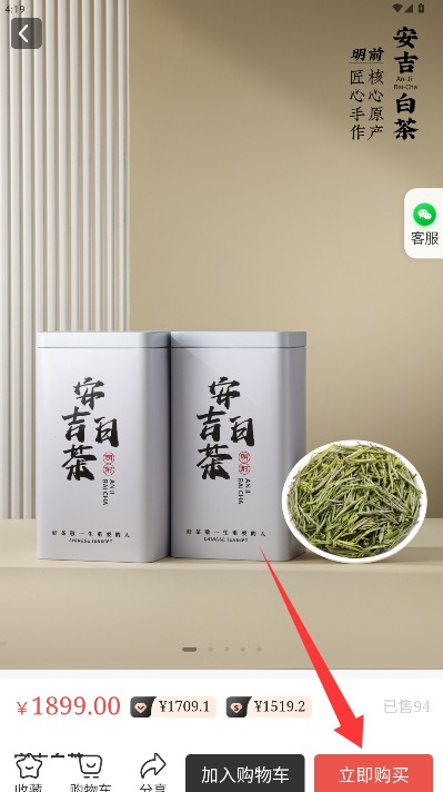 4、进入商品详细信息界面后,点击页面右下角"立即购买"按钮即可完成购买流程。
