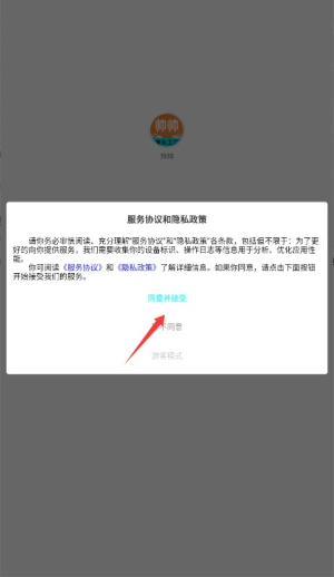 1、初次启动应用时,需阅读并同意用户服务协议及隐私条款,点击确认后进入主界面。