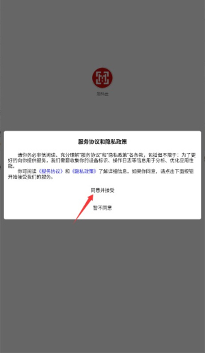 1、初次启动应用时,需阅读并同意用户服务协议及隐私条款,点击确认后进入主界面。