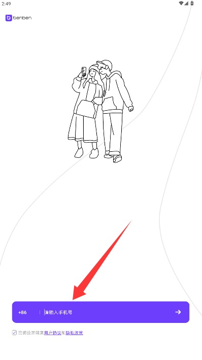 2、在登录界面输入手机号码并获取验证码输入,勾选同意相关协议后完成登录。