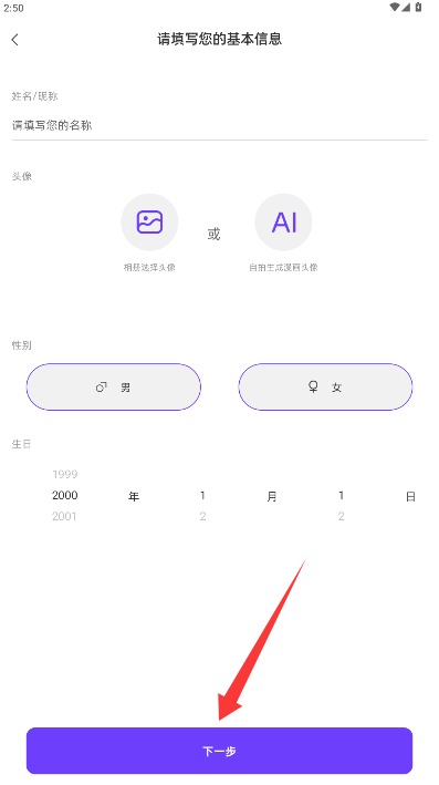 3、按要求填写昵称、上传头像等个人信息,完善资料后即可开始使用应用功能。