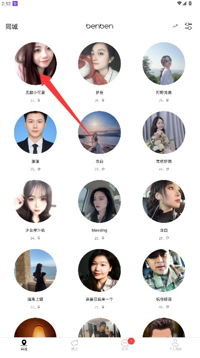 4、进入同城页面浏览推荐用户,点击感兴趣的用户头像进入用户主页发起聊天互动。