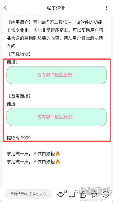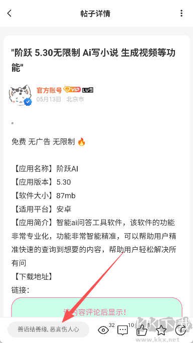 4、在评论区任意留言后,即可显示应用下载链接;