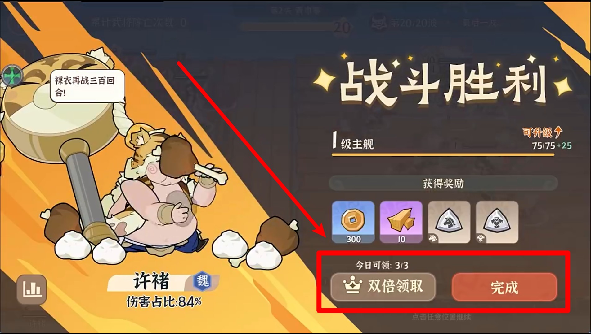3.战斗胜利:击败敌军即可领取金币木材宝箱等奖励,还能选择"双倍领取"获取更多资源助力成长。
