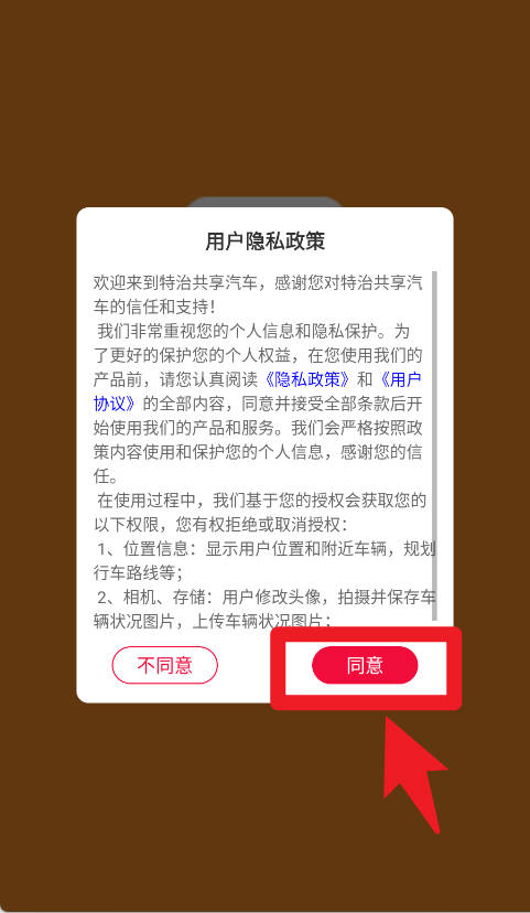 1、首次进入需认真阅读用户隐私政策与用户协议,点击同意按钮后方可继续使用平台功能。
