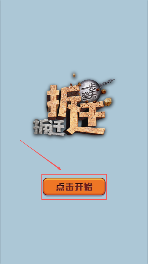1、打开拆迁拆迁一步登天游戏后,先等待游戏加载完成,加载好后进入初始界面,找到开始游戏的选项并点击。