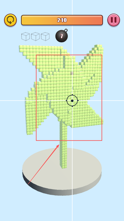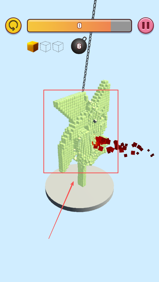 2、瞄准后点击屏幕挥动大锤子,锤子会朝着瞄准的方向砸向建筑,每次击中都会对建筑造成破坏,直到建筑彻底倒塌。
