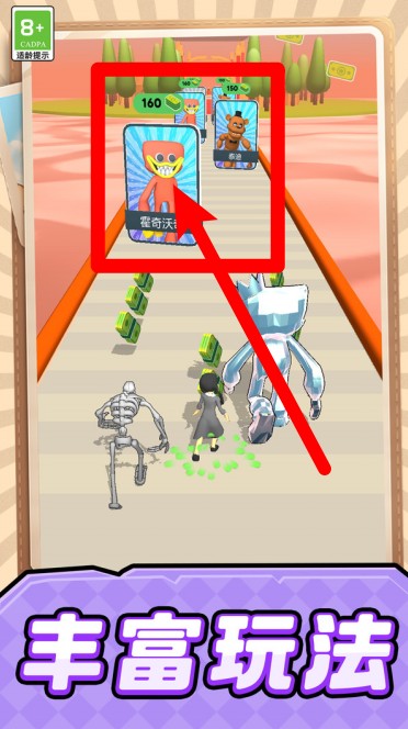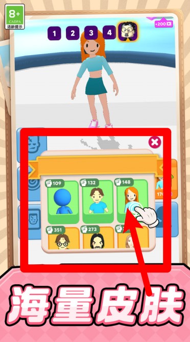 3.海量皮肤系统:角色可解锁多种独特皮肤,搭配自由造型展现个性。不断收集新外观,不仅带来视觉新鲜感,还增加游戏动力。