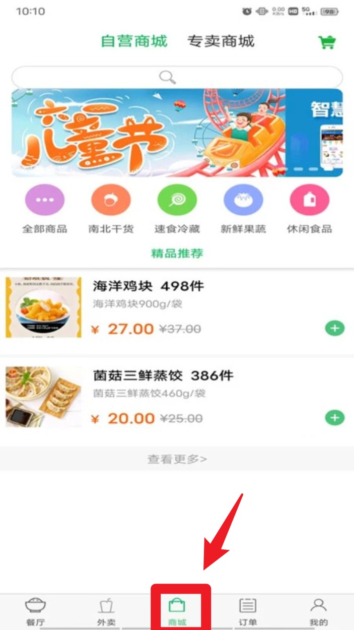 4. 若需购买食品、干货等商品,点击底部菜单栏“商城”,浏览商品分类,选择心仪商品后加入购物车并下单。