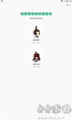 1、打开应用后,根据提示选择你偏好的阅读类型;