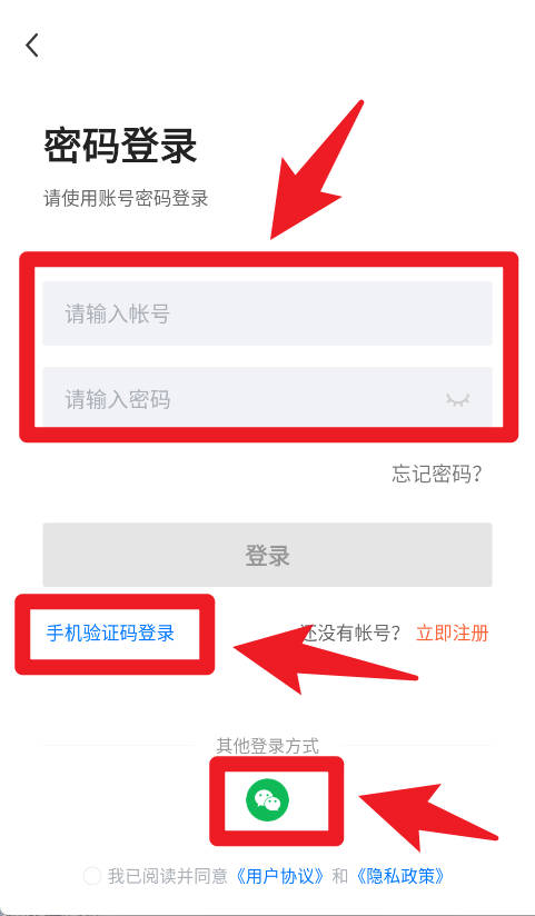 1、登录页面支持输入账号密码登录,也可以通过手机验证码或微信方式快捷登录,操作灵活。
