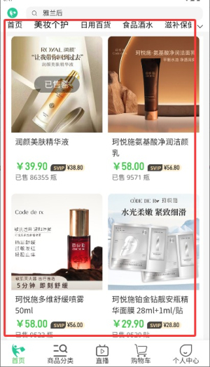 2、在首页导航栏选择"商品分类"选项,浏览各类精选商品和促销活动信息。