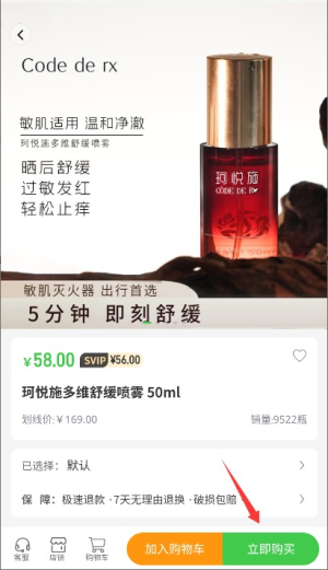 4、在商品详情页面点击"立即购买"按钮,即可完成订单确认与支付流程。