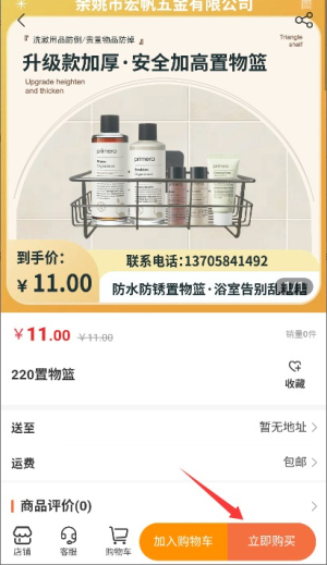 4、在商品详情页面点击"立即购买"按钮,即可完成订单确认与支付流程。