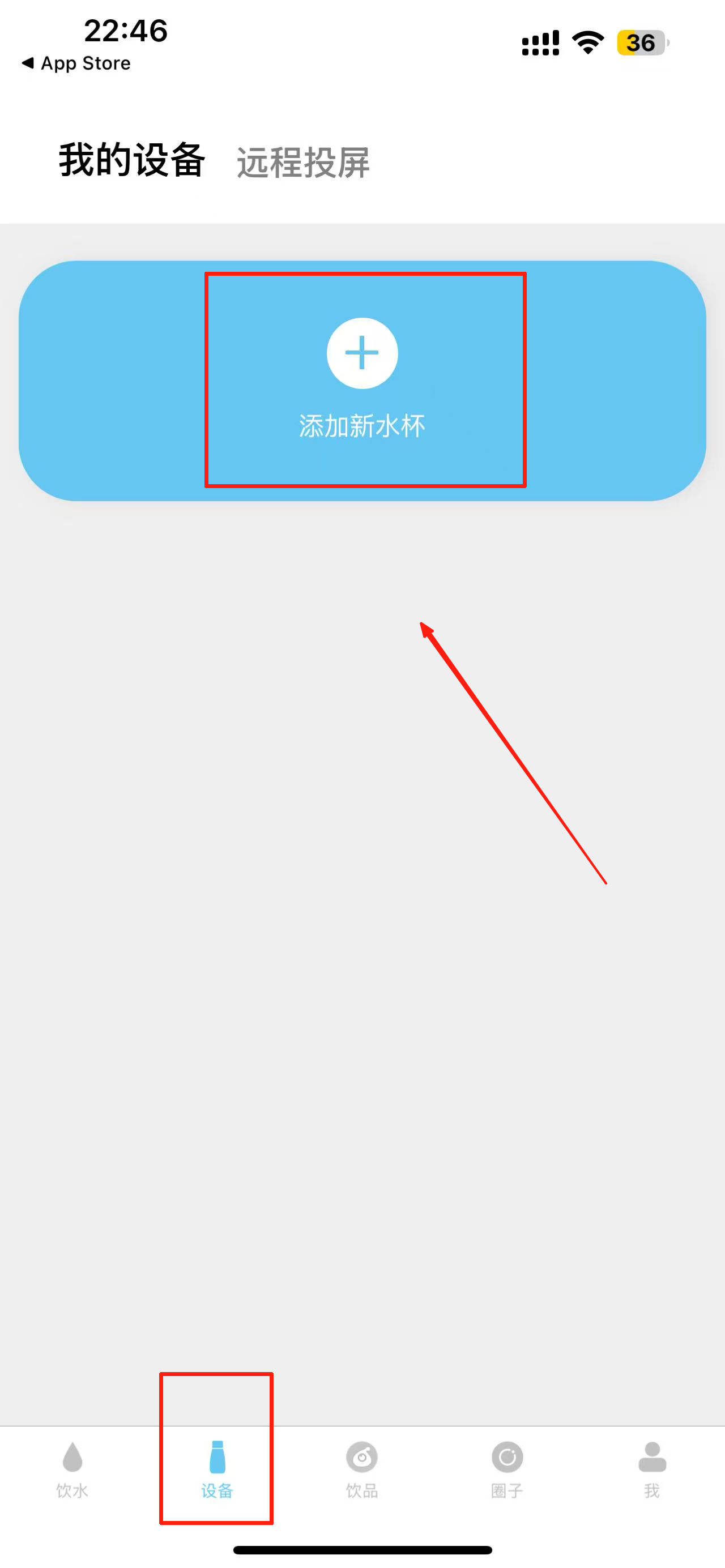 2、点击“添加新水杯”按钮,绑定你的饮水设备。