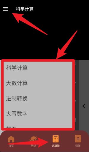 4、进入“计算器”功能,点击左上角,可选择科学计算、大数计算、进制转换等工具,适合日常计算与专业场景使用,切换便捷直观。