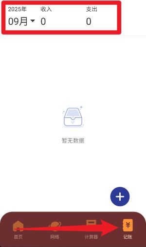 5、点击“记账”标签可查看每月收支统计数据,当前支持按月分类记录和展示收入支出情况,帮助用户高效管理个人财务。