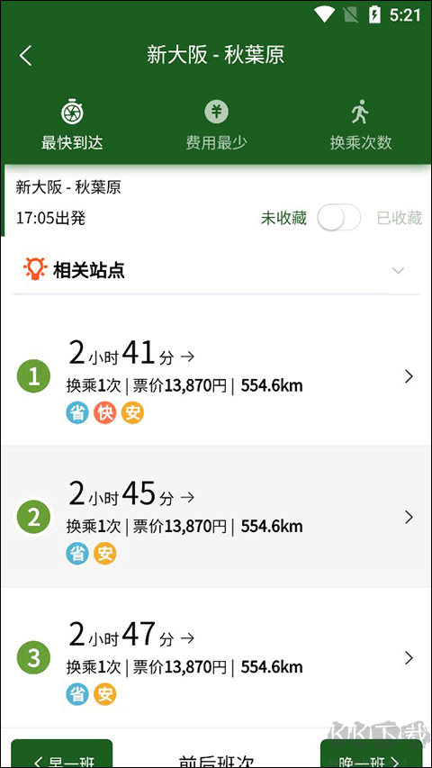 4、全中文检索:起点与终点均支持中文输入及智能联想,自动匹配相近日文站名。