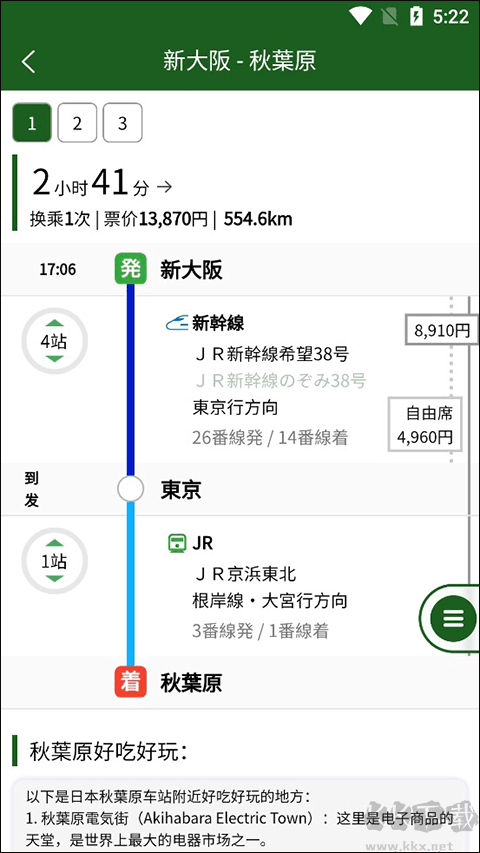 3、多方案推荐:覆盖全日本约一万个车站,为用户推荐最佳换乘路线;