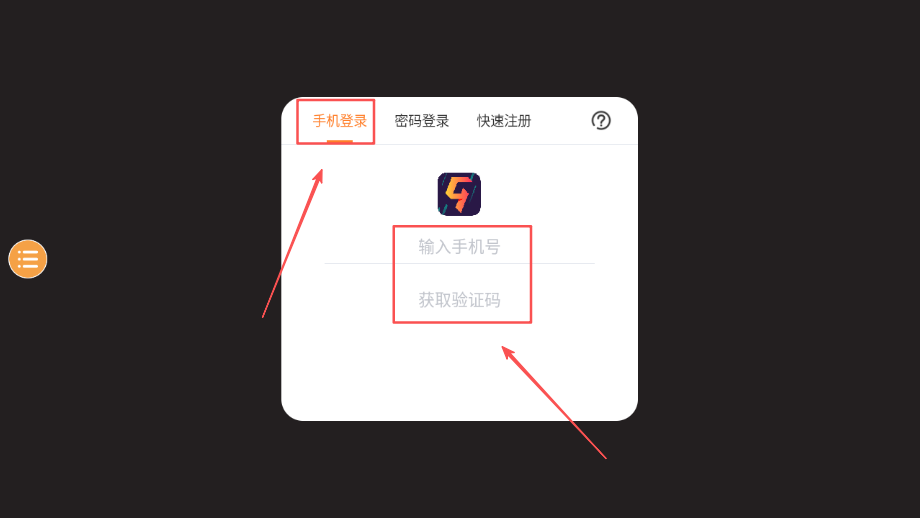 2、进入游戏后,直接用手机号登录,输入手机号后点击获取验证码,把收到的验证码填进去,就能快速登录系统使用游戏了。