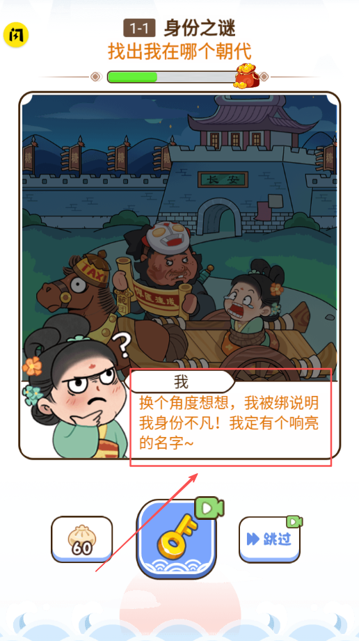 2、看明白问题后,将视线移到关卡对应的图片上,仔细观察图中的每一处细节,在画面里寻找能匹配问题答案的线索。