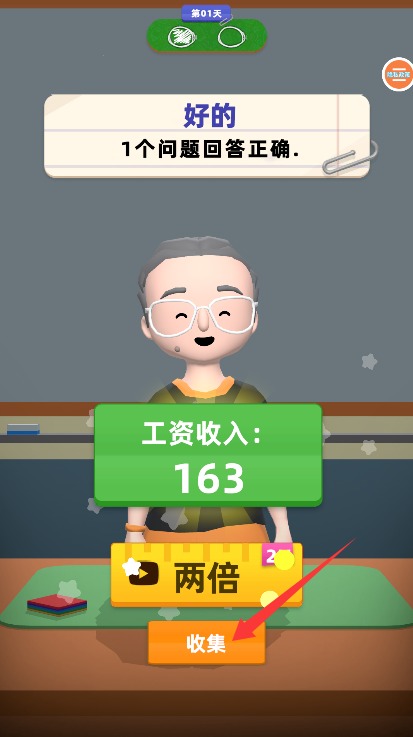 4、顺利完成教学任务后可查看当日薪酬奖励,点击收集按钮将收入纳入个人账户。