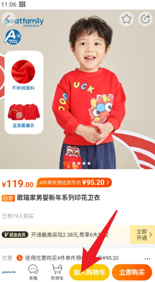 3. 进入商品详情页后,点击下方“加入购物车”按钮,将商品添加至购物清单以便后续统一结算。