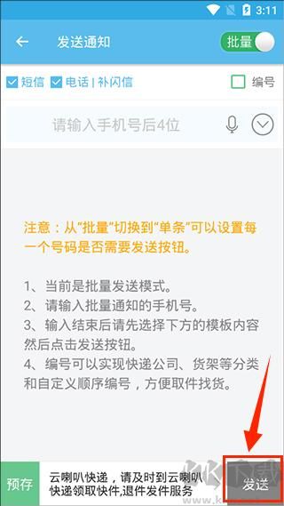 5、提高效率:一次性录入500个号码,一键发送,坐等取件。