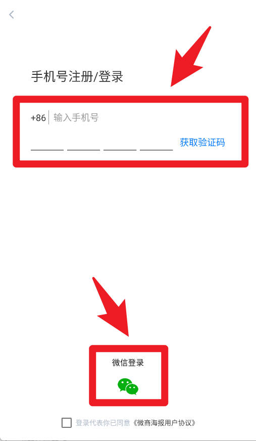 1、进入时可通过输入手机号验证码或选择微信登录,快速完成操作。