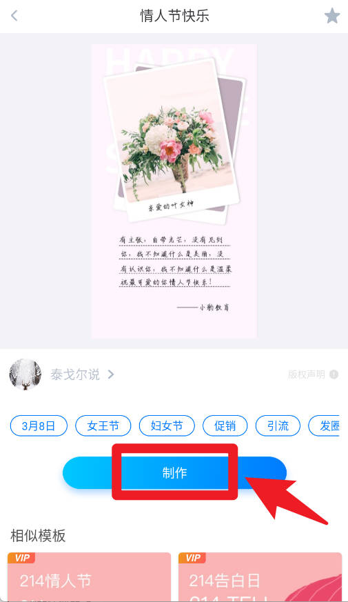 3、选择喜欢的海报模板后,点击制作按钮,即可进入编辑界面进行个性化设计。