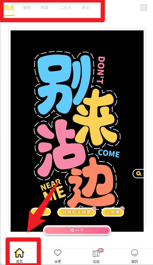 1、在首页栏目中,用户可以浏览最新、明星、二次元和美女等不同分类的壁纸内容。