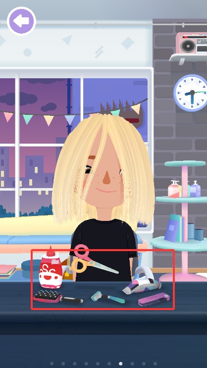 3、点击角色前方的各类美发工具,使用专业剪刀、染发剂等进行造型细节创作。