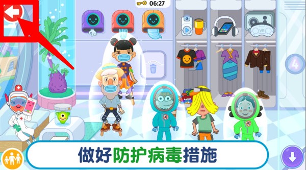 2.返回操作提示:通过点击左上角返回按钮,可以随时退出当前房间或场景,方便切换不同的医院功能区域。