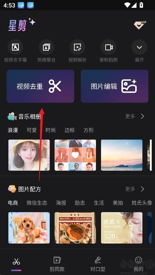 1、打开星剪应用,在首页选择“视频去重”功能;