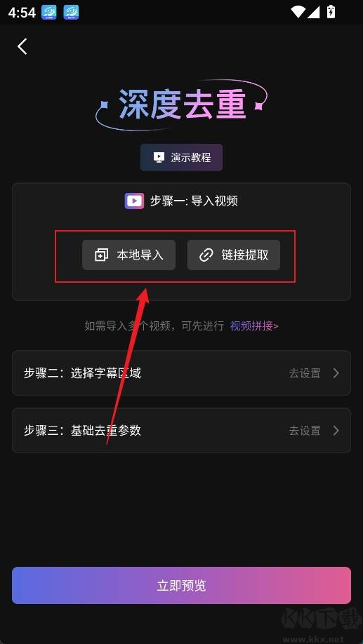 2、选择视频导入方式:从本地相册添加或通过链接提取;