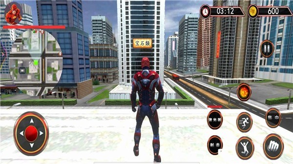 2.玩家可以通过触摸屏幕或者按键操作蜘蛛侠在城市中进行移动和攀爬。
