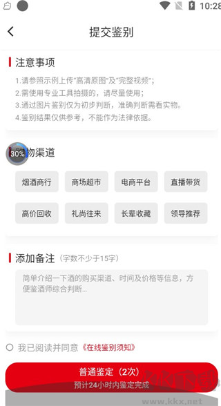4、填写购买渠道信息,点击“普通鉴定”提交。