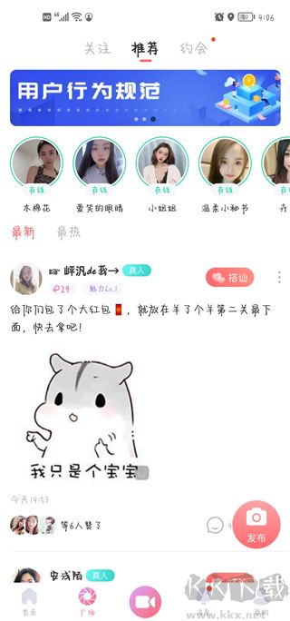 6、进入“广场”可浏览他人动态,也可发布自己的内容;