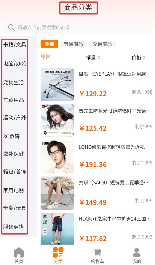 3、通过分类筛选功能,可快速按类别定位目标商品并查看详细信息。