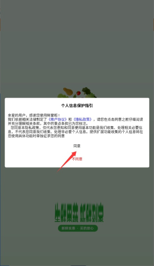 1、初次启动应用时,需阅读并同意用户服务协议及隐私条款,点击确认后进入主界面。