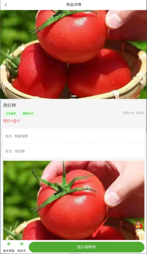 4、确认商品信息后,点击页面右下角的购物车按钮即可添加商品。